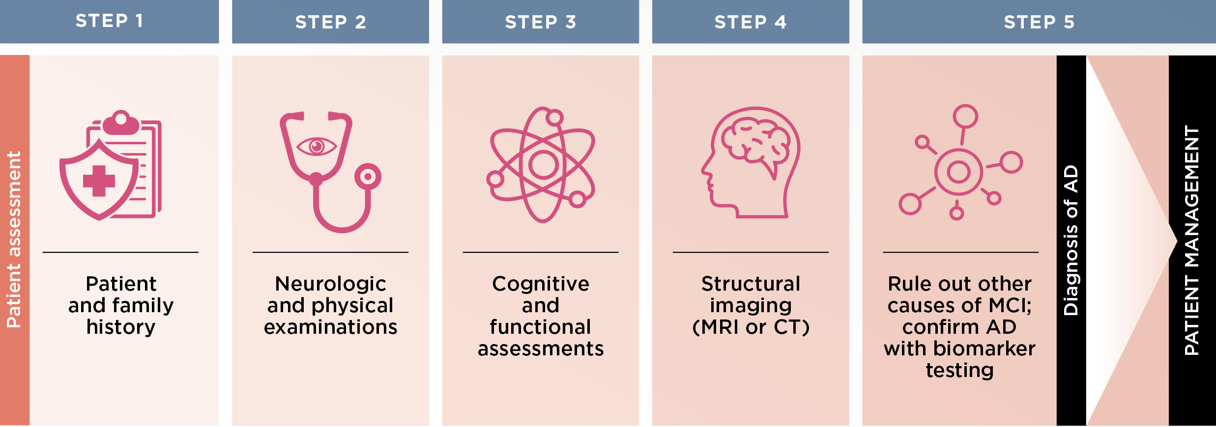 Steps for diagnosing mild cognitive impairment (MCI) due to Alzheimer’s disease (AD)1,2